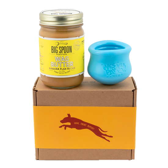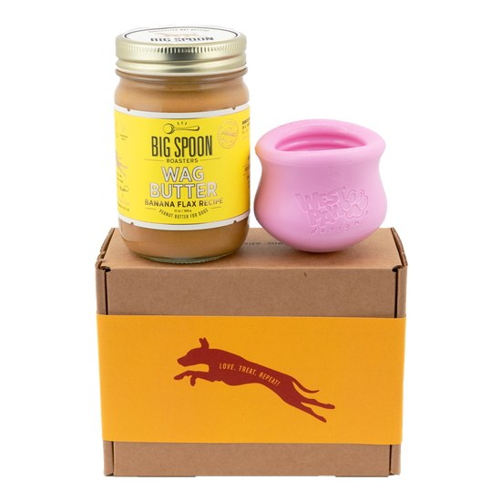 Show the pup in your life how much you love 'em with this fun-filled pairing, featuring a jar of Wag Butter and the perfect (sustainable) vessel for treating! Check out our blog post on the nutritional benefits of Wag Butter.