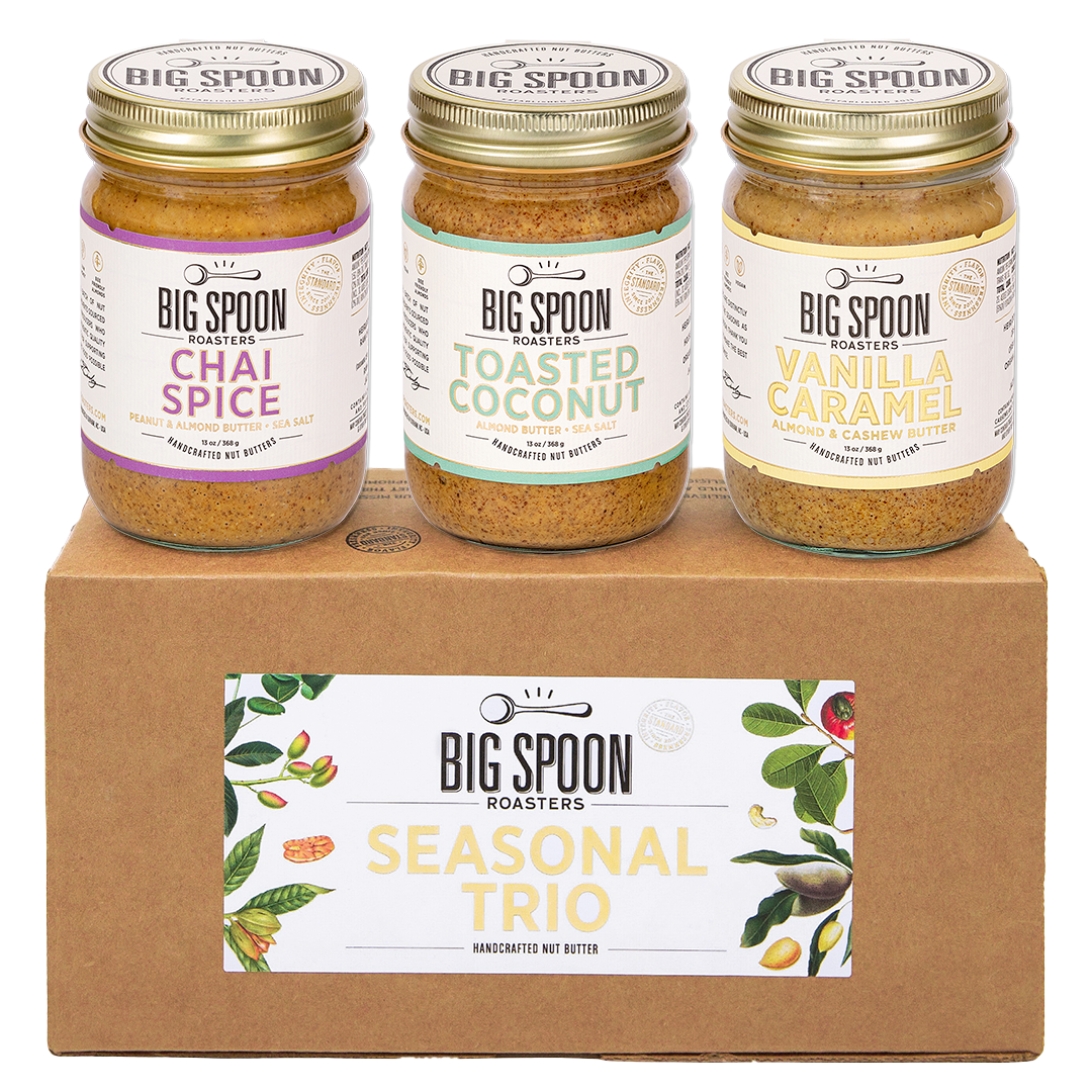 There’s a crisp chill in the air, the leaves are falling, and—perhaps best of all—there’s a new Seasonal Nut Butter Trio for you to enjoy. These cozy nut butters represent the best of the season, perfect for snuggling up by the fire or spreading on your favorite snack. Whether stocking your pantry or stuffing stockings, this Trio is great for sharing with those you love (even if it’s just your future self)!